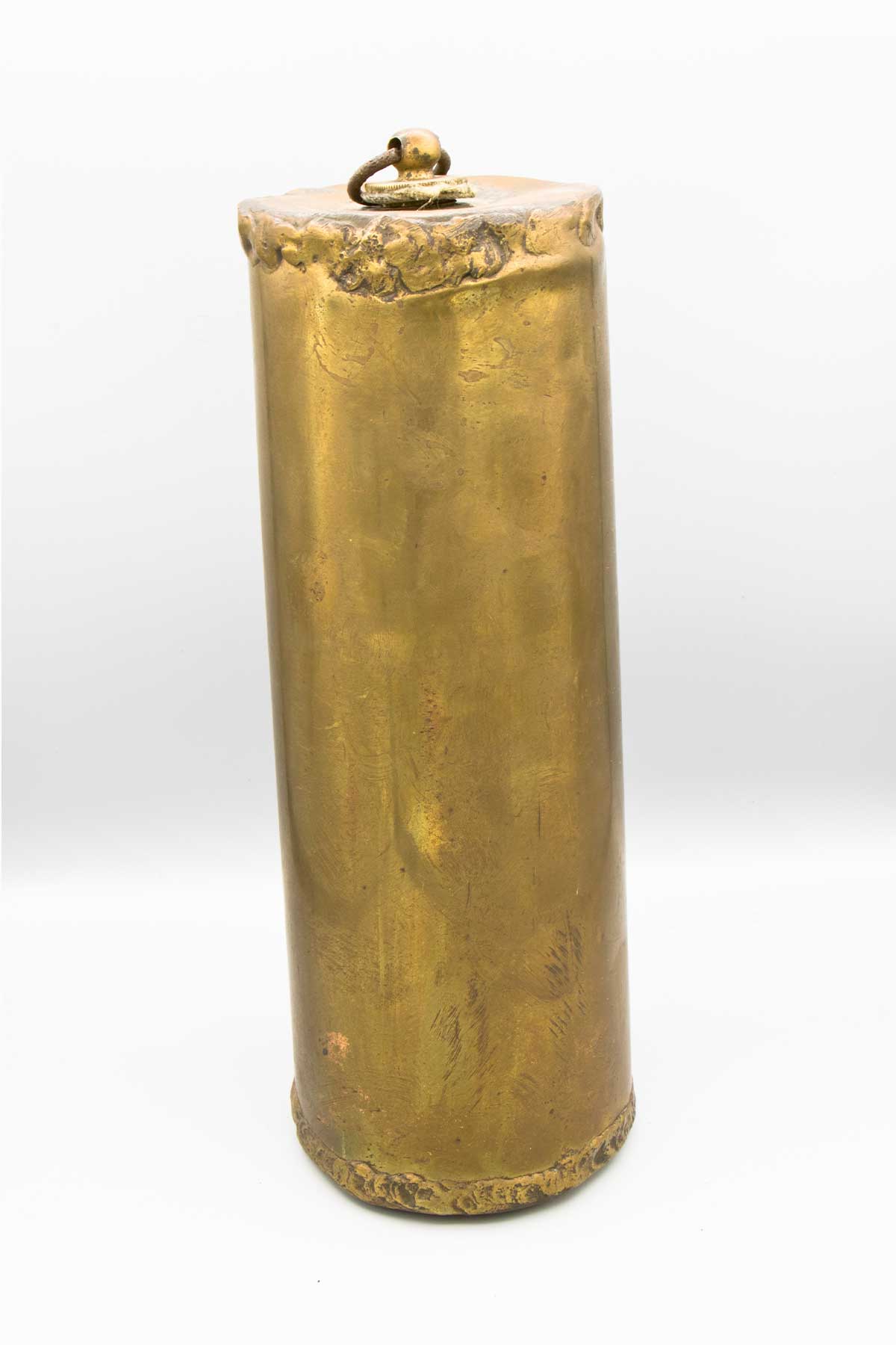 Bottiglia per l’acqua calda realizzata a partire da un bossolo d’artiglieria inglese calibro 75 mm, recuperato dopo la Seconda guerra mondiale